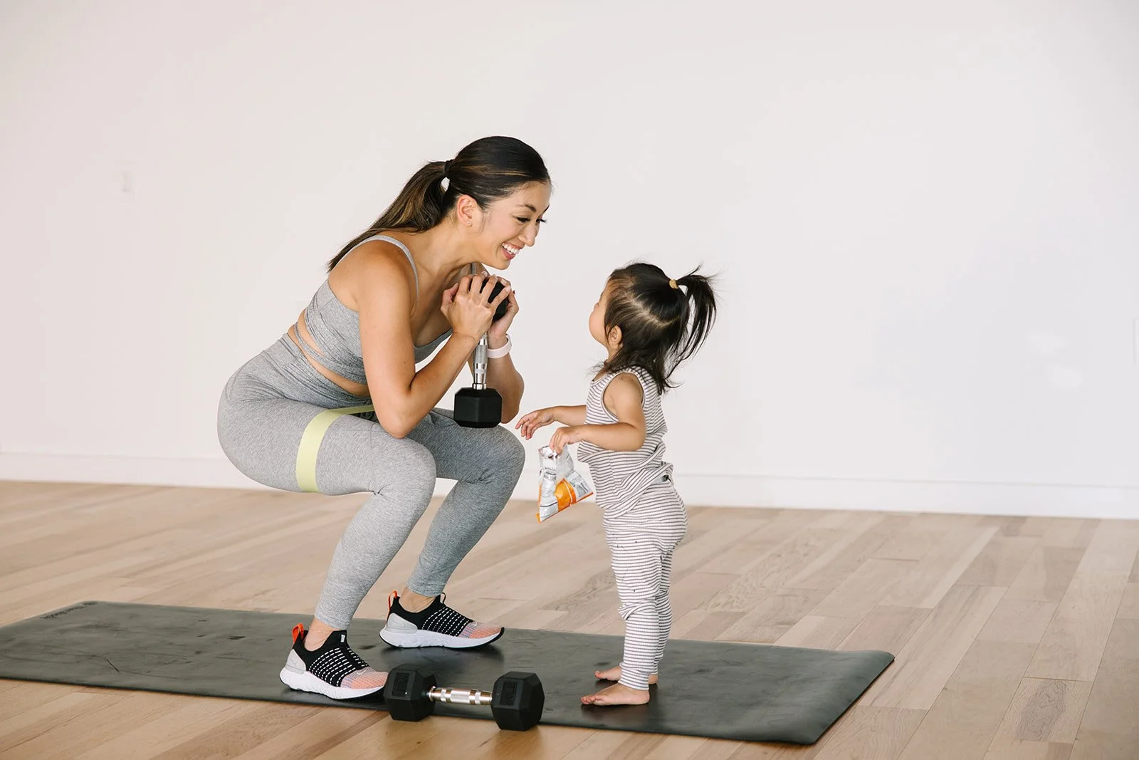 I also provided suggestions on how to modify if you have a little one that is attached to you or wants to engage mid workout!